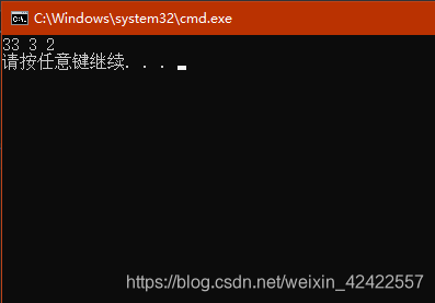 首先输出的第一个"33"是"i"的值,第二个"%d"算出来的是"33"的值的字节大小,占两个字节,还有空格的字节长度,一共是三个字节,所以输出的是"3",第三个"%d"算出来的是"3"的值的字节大小,占一个字节,还有空格的字节长度,一共是两个字节,所以输出的是2。