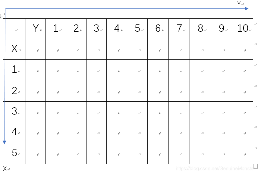 既然容量和物品种类是变化的,那么我们建立一个二维数组(下文均称最佳价值表),横向代表背包容量,纵向代表物品种类,将每个不同容量的背包的最优解记录在最佳价值表里(这个最佳价值表记录的是满足题意的不同背包容量的最优解),如下图所示。由此正式开始思解题算法:思考递推式。