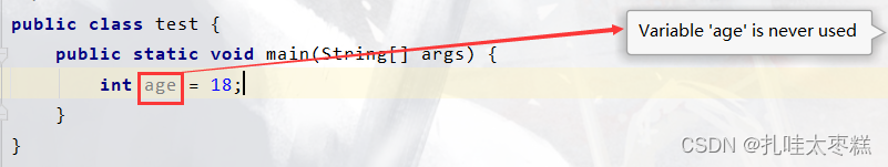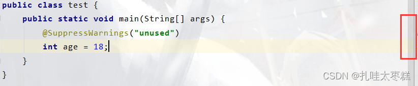 加上@SuppressWarnings注解之后这个警告就会消失,哪怕这个变量依然没有在下面进行引用,此时编译器右边没有了黄色警告