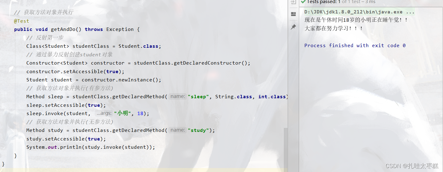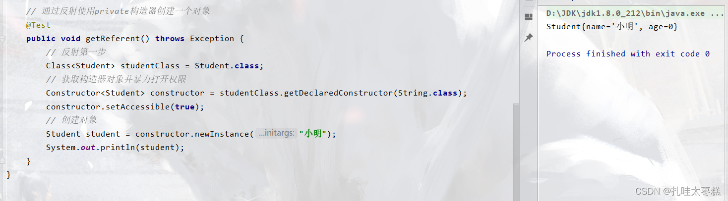 ⚠ 如果构造器被私有化了的话,也就是说构造器被private修饰了,需要使用构造器对象名.setAccessible(true)暴力打开私有构造器的权限