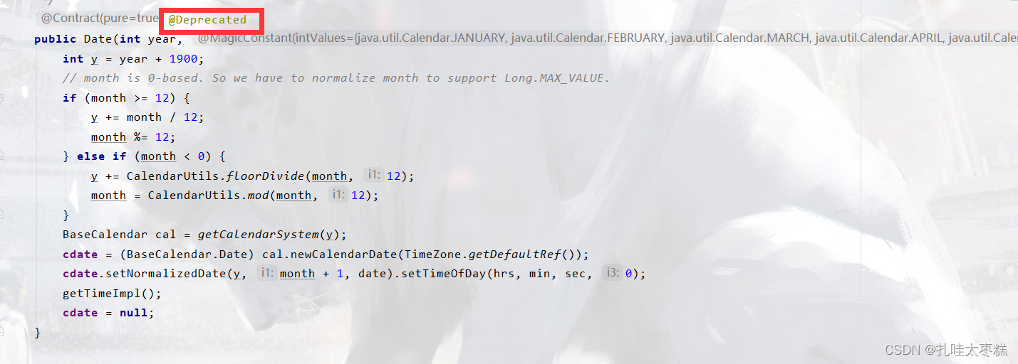 过时比较多的当属Date类,以下注解就表明下面的构造器已经过时,不推荐使用