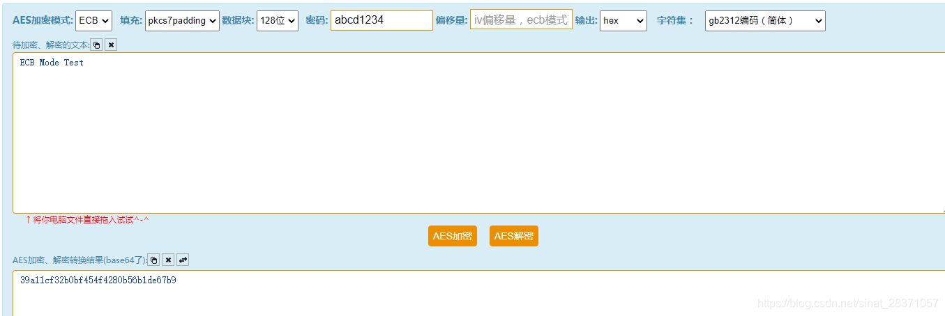 说明:我们可以通过对比“示例代码的加密结果”和“网上一些在线 aes 加解密网站的加密结果”,来验证我们的加密操作是否正确:在线AES加密解密、AES在线加密解密、AES encryption and decryption--查错网。