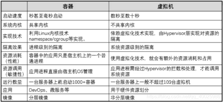 虚拟机运行的是一个完成的操作系统,通过虚拟机管理程序对主机资源进行虚拟访问,相比之下需要的资源更多。