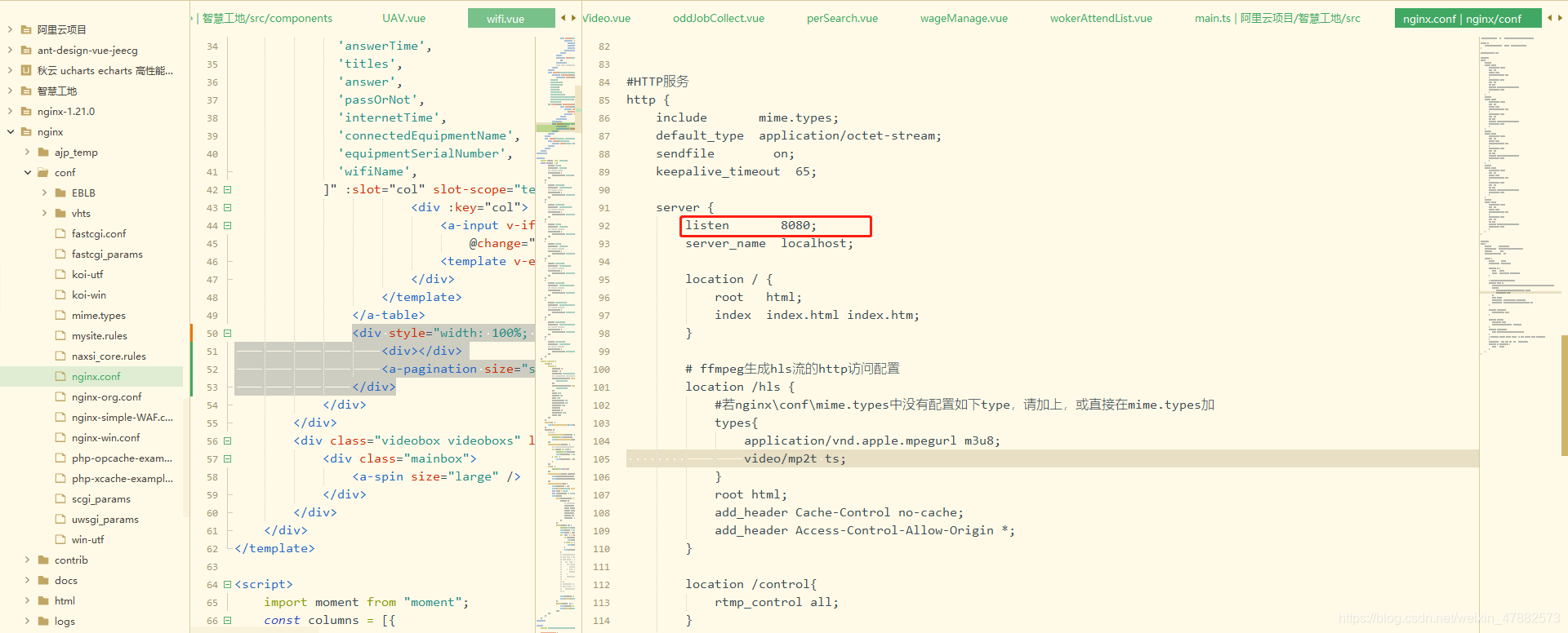 # ffmpeg生成hls流的http访问配置location /hls {#若nginx\conf\mime.types中没有配置如下type,请加上,或直接在mime.types加types{application/vnd.apple.mpegurl m3u8;video/mp2t ts;}root html;add_header Cache-Control no-cache;add_header Access-Control-Allow-Origin *;}