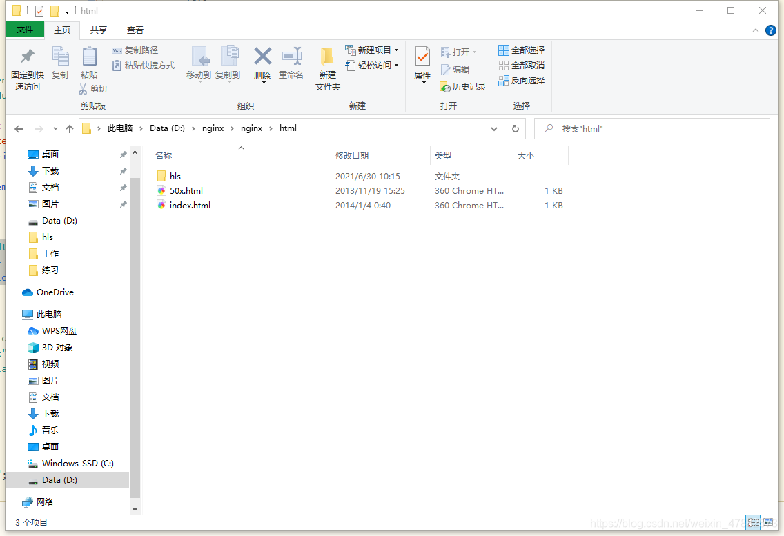 4.打开nginx中的html文件,创建hls文件夹