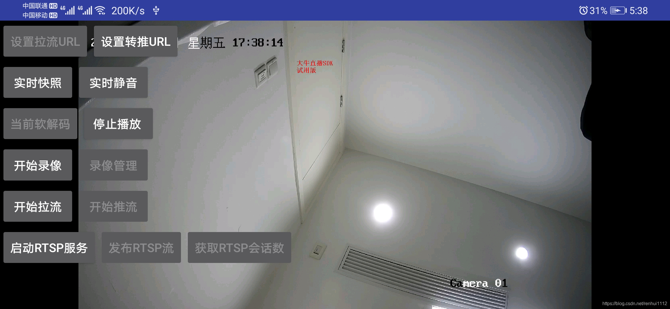 注意:以上播放、录像、转推RTMP、注入轻量级RTSP服务四者是可单独工作,也可随时启动或停止相关功能,互不影响。