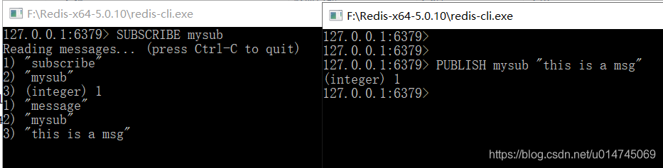 如上图,发布者向 mysub 频道发送了一条消息,redis会返回当前订阅者数量。