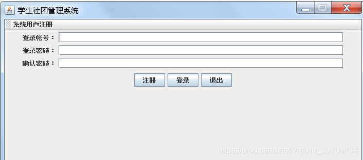 用户输入账号密码进行登录、没注册的用户点击注册按钮进行用户信息注册、注册后即可成功登录查看社团信息。