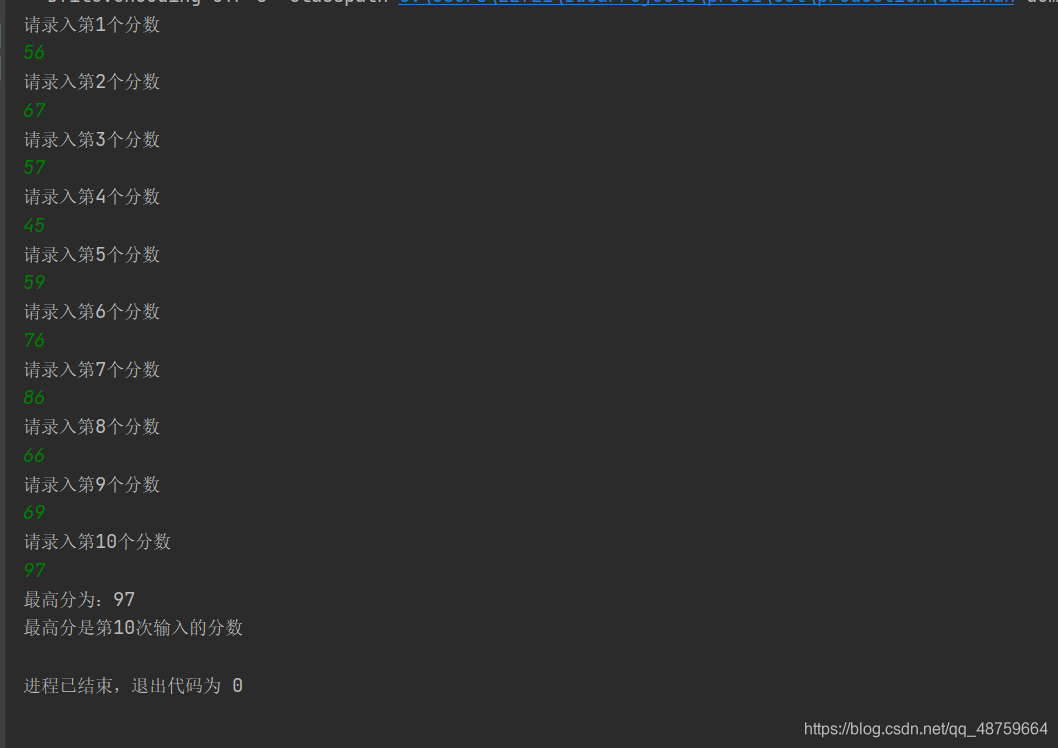 从键盘上录入10科考试分数,输出最高分最高分输入的序号
