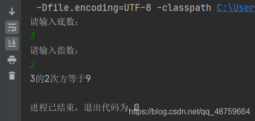 /*** 从键盘上录入两个整数,计算a的b次方的结果*/import java.util.Scanner;public class Test25 {public static void main(String[] args) {Scanner sc = new Scanner(System.in);System.out.println("请输入底数:");int ds = sc.nextInt();System.out.println("请输入指数:");int zs = sc.nextInt();//计数变量long j = 1;for (int i = 1;i<=zs;i++){j*=ds;}System.out.println(ds+"的"+zs+"次方等于"+j);sc.close();}