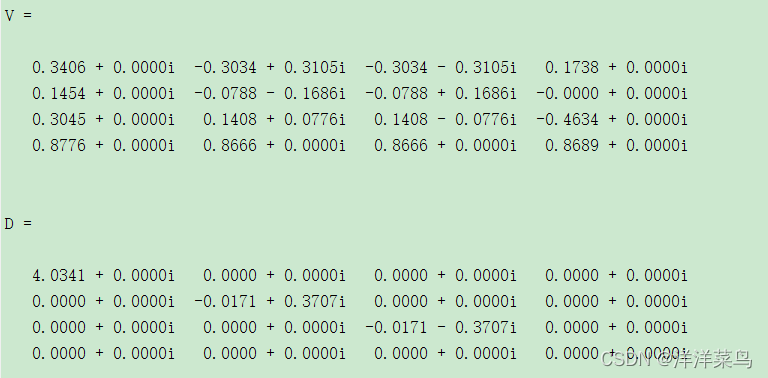 然后通过eig函数求取矩阵的特征向量