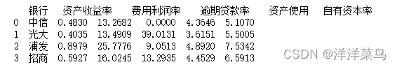 | 银行 | 资产收益率 | 费用利润率 | 逾期贷款率 | 资产使用 | 自有资本率 |