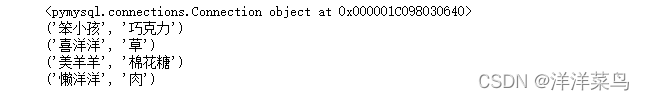 val = [(1, '巧克力', 154),(2, '草', 155),(3, '棉花糖',156),(4, '肉' ,157)