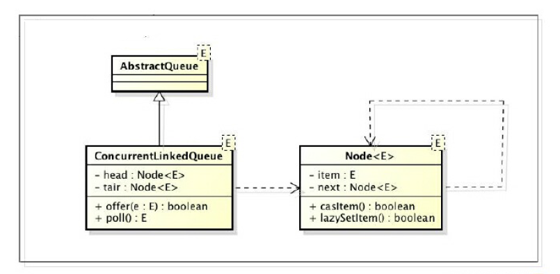 ConcurrentLinkedQueue是一个基于链接节点的无界线程安全队列,它采用FIFO的规则对节点进行排序,当我们添加一个元素的时候,它会添加到队列的尾部;当我们获取一个元素时,它会返回队列头部的元素。
