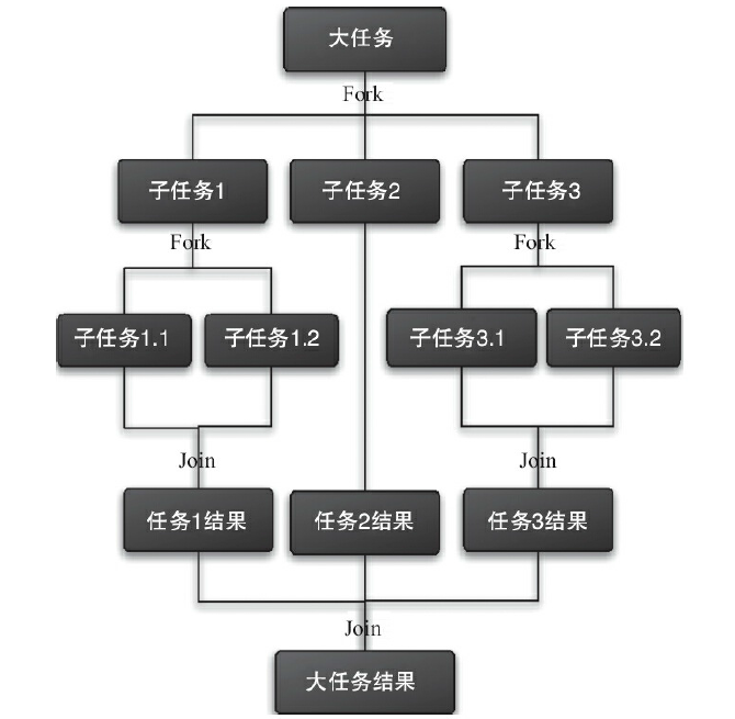 Fork/Join框架是 Java 7提供的一个用于并行执行任务的框架,是一个 把大任务分割成若干个小任务,最终汇总每个小任务结果后得到大任务结果 的框架。