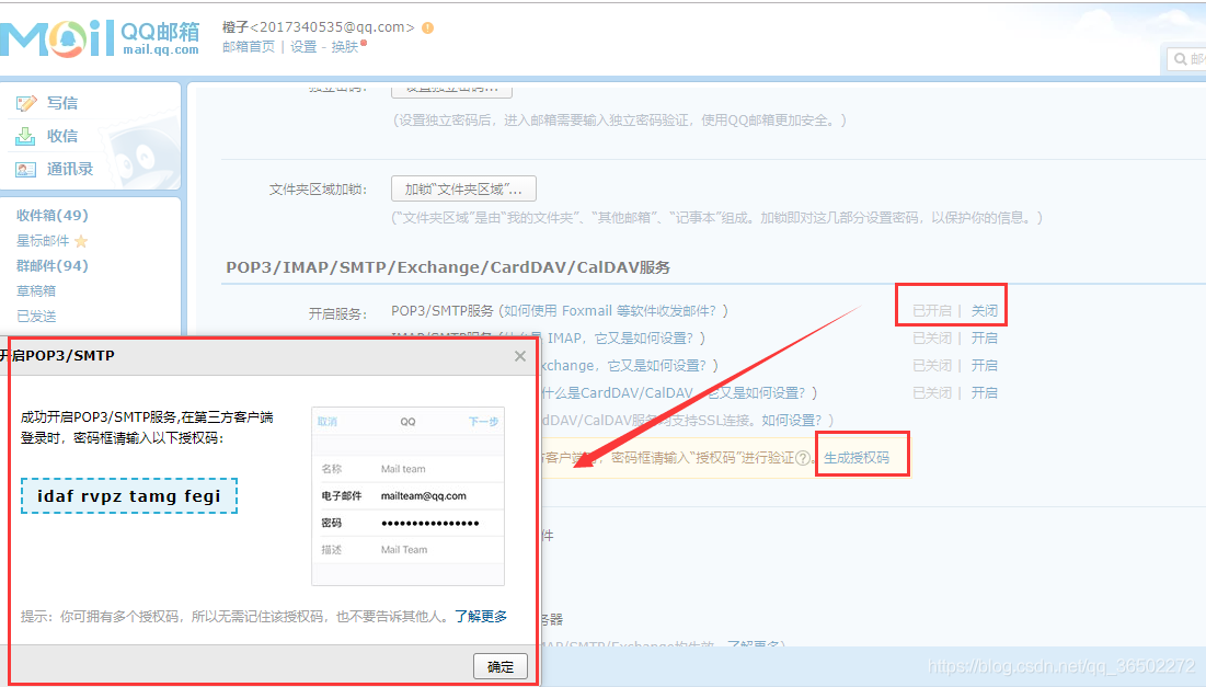本次使用qq邮箱发送邮件,前提是需要打开qq邮箱的pop3/smtp功能: