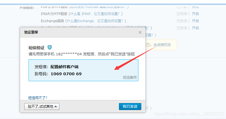 开启POP3/SMTP服务,会先要求QQ号申请第二代密码保护,然后才能进行下一步,如果成功后,会生成一个授密码权