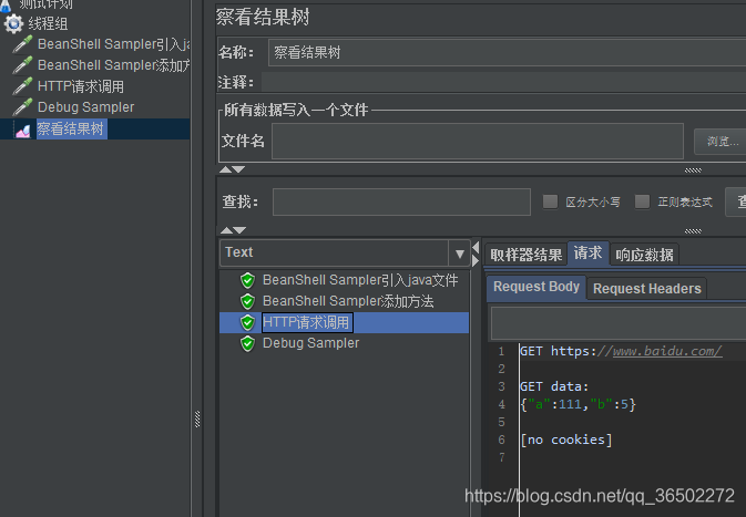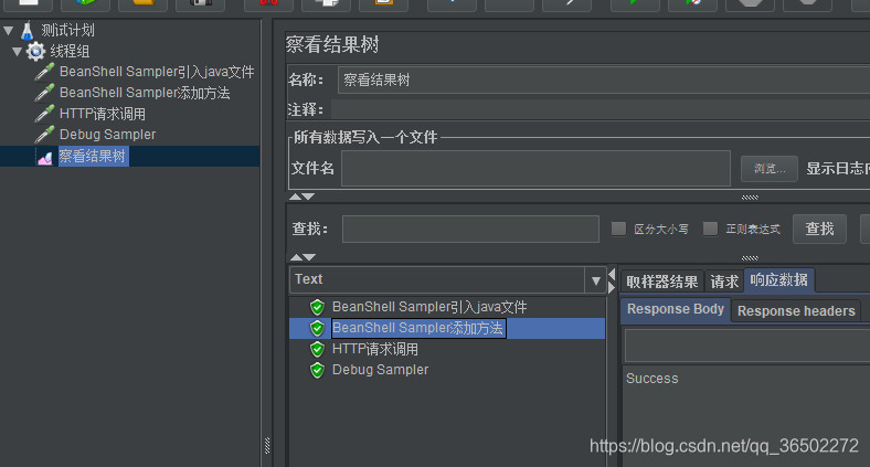 2、BeanShell Sampler响应结果为Success,说明调用成功了