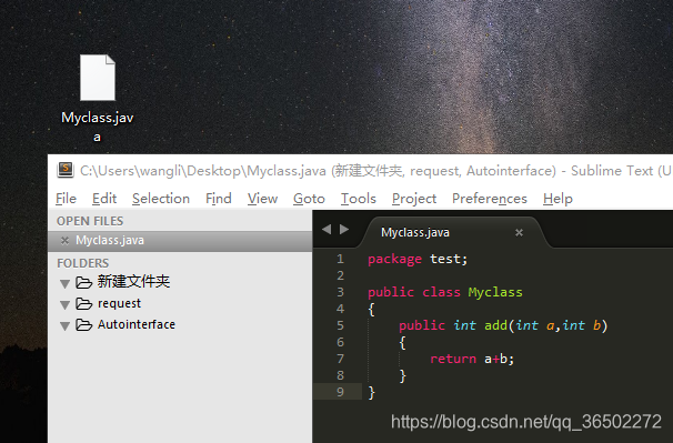 1、新建java文件C:\\Users\\wangli\\Desktop\\Myclass.java