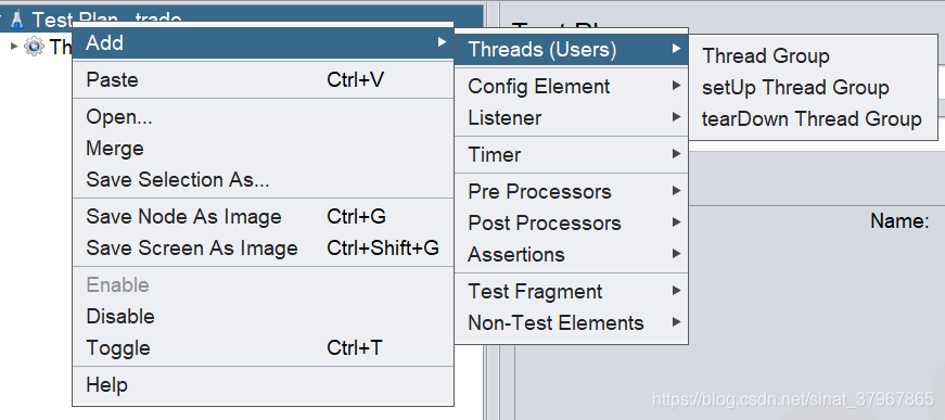 这个就是我们通常添加运行的线程。可以看作一个虚拟用户组,线程组中的每个线程都可以理解为一个虚拟用户。线程组中包含的线程数量在测试执行过程中是不会发生改变的。