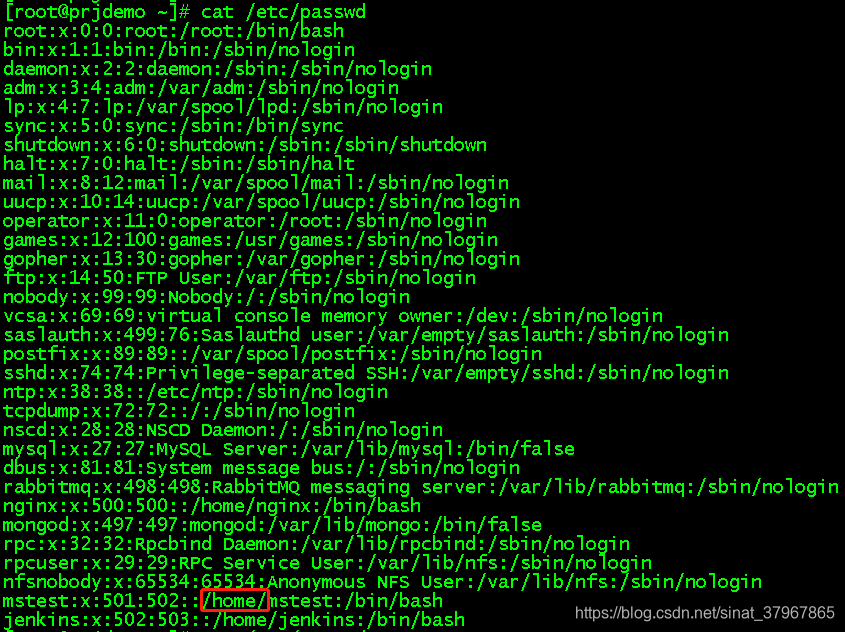 /home/mstest -->主目录:用户的起始工作目录,它是用户在登录到系统之后所处的目录。在大多数系统中,各用户的主目录都被组织在同一个特定的目录下,而用户主目录的名称就是该用户的登录名