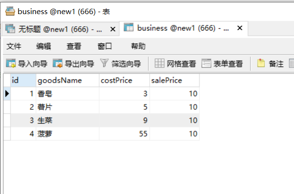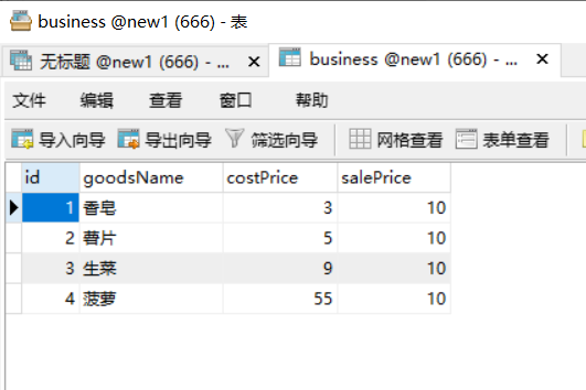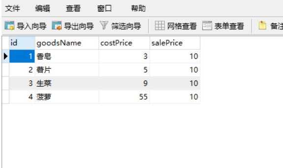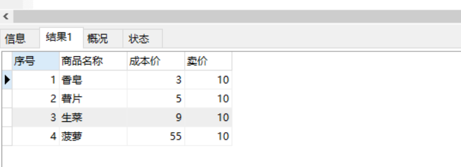 SELECT id AS '序号',goodsName AS '商品名称',costPrice AS '成本价',salePrice AS '卖价'