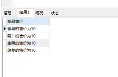 SELECT CONCAT(goodsName,'的售价为',salePrice) AS '商品售价'