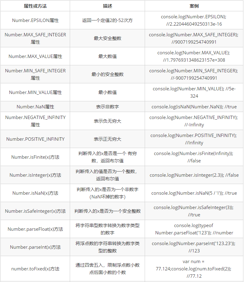 可以处理数字值的对象,由Number()构造器创建,其相关属性和方法如下: