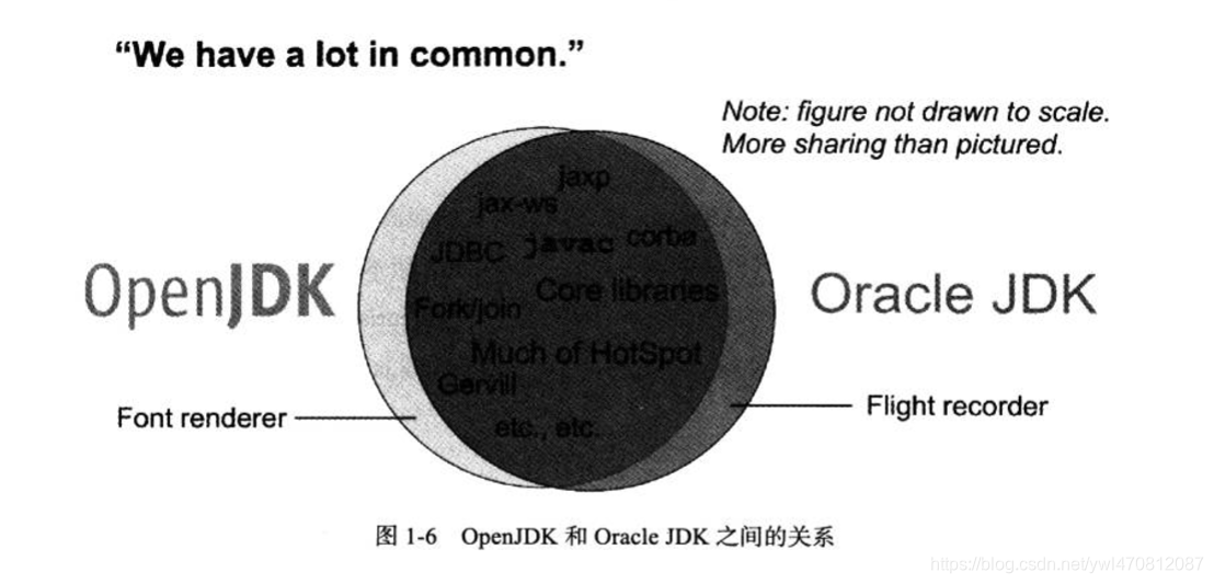 首先要先明确OpenJDK和Sun/OracleJDK之间,以及OpenJDK 6、OpenJDK 7、OpenJDK 7u和OpenJDK 8等项目之间是什么关系,这有助于确定接下来编译要使用的JDK版本和源码分支。从前面介绍的Java发展史中我们了解到OpenJDK是Sun在2006年末把Java开源而形成的项目,这里的“开源”是通常意义上的源码开放形式,即源码是可被复用的,例如IcedTea 9、UltraViolet9都 是从OpenJDK源码衍生出的发行版。但如果仅从“开源”字面意义(开放可阅读的源码)上看,其实Sun自JDK 1.5之后就开始以Java Research License(JRL)的形式公布过Java源码,主要用于研究人员阅读(JRL许可证的开放源码至JDK1.6 Update 23为止)。把这些JRL许可证形式的Sun/OracleJDK源码和对应版本的OpenJDK源码进行比较,发现除了文件头的版权注释之外,其余代码基本上都是相同的,只有字体渲染部分存在一点差异,OracleJDK采用了商业实现,而OpenJDK使用的是开源的FreeType。当然,“相同”是建立在两者共有的组件基础上的,Oracle JDK中还会存在- - 些Open JDK没有的、商用闭源的功能,例如从JRockit移植改造而来的Java Flight Recorder。预计以后JRockit 的MissionControl移植到HotSpot之后,也会以Oracle JDK专有、闭源的形式提供。