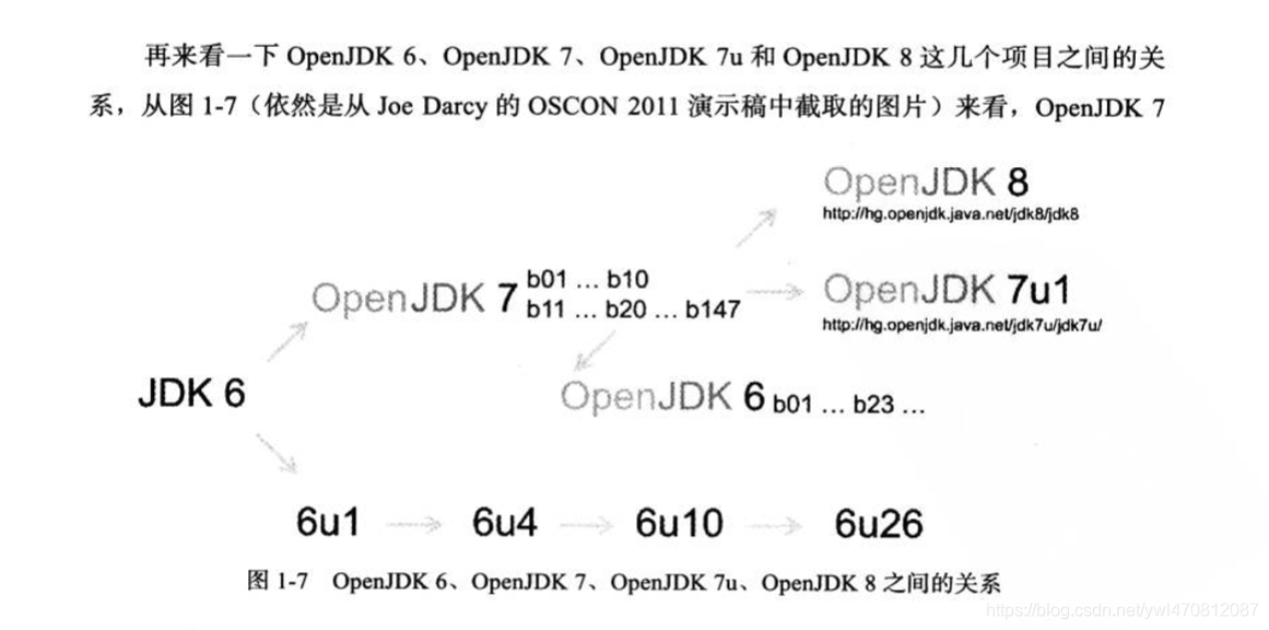 是始于JDK 6时期,当时JDK 6和JDK 6 Update 1已经发布,JDK 7已经开始研发了,所以OpenJDK7是直接基于正在研发的JDK7源码建立的。但考虑到OpenJDK7的状况在当时还不适合实际生产部署,因此在OpenJDK 7 Build 20的基础上建立了OpenJDK 6分支,剥离掉JDK 7新功能的代码,形成-一个可以通过TCK 6测试的独立分支。2012年7月,JDK 7正式发布,在OpenJDK中也同步建立了OpenJDK 7 Update项目对JDK 7进行更新升级,以及OpenJDK 8项目开始下一个JDK大版本的研发。按照开发习惯, .新的功能或Bug修复通常是在最新分支上进行的,当功能或修复在最新分支上稳定之后会同步到其他老版本的维护分支.上。OpenJDK 6、OpenJDK 7、OpenJDK 7u和OpenJDK 8的源码都可以在它们相应的网页上找到,在本次编译实践中,笔者选用的项目是OpenJDK 7u,版本为7u6。获取OpenJDK源码有两种方式,其中一种是通过Mercurial代码版本管理工具从