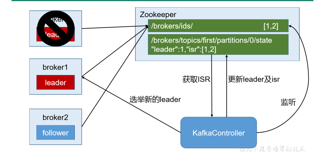 当我们的kafkabrokerid挂了之后,zk会为我们怎么选举,我们将kafka的brokerid:0的节点 kill掉