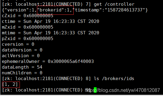 [zk: localhost:2181(CONNECTED) 7] get /controller