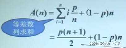 如果在数列里:p/n是在第i个位置的概率,第i个位置需要比较i次。对n个位置进行求和。
