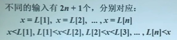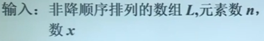 | 输入:数组L[1...n],元素从小到大排序,数x | |