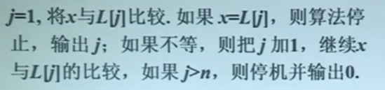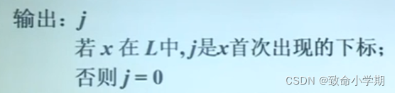 | 输出:若x在L中,输出x位置下标 j ,否则输出0 | |