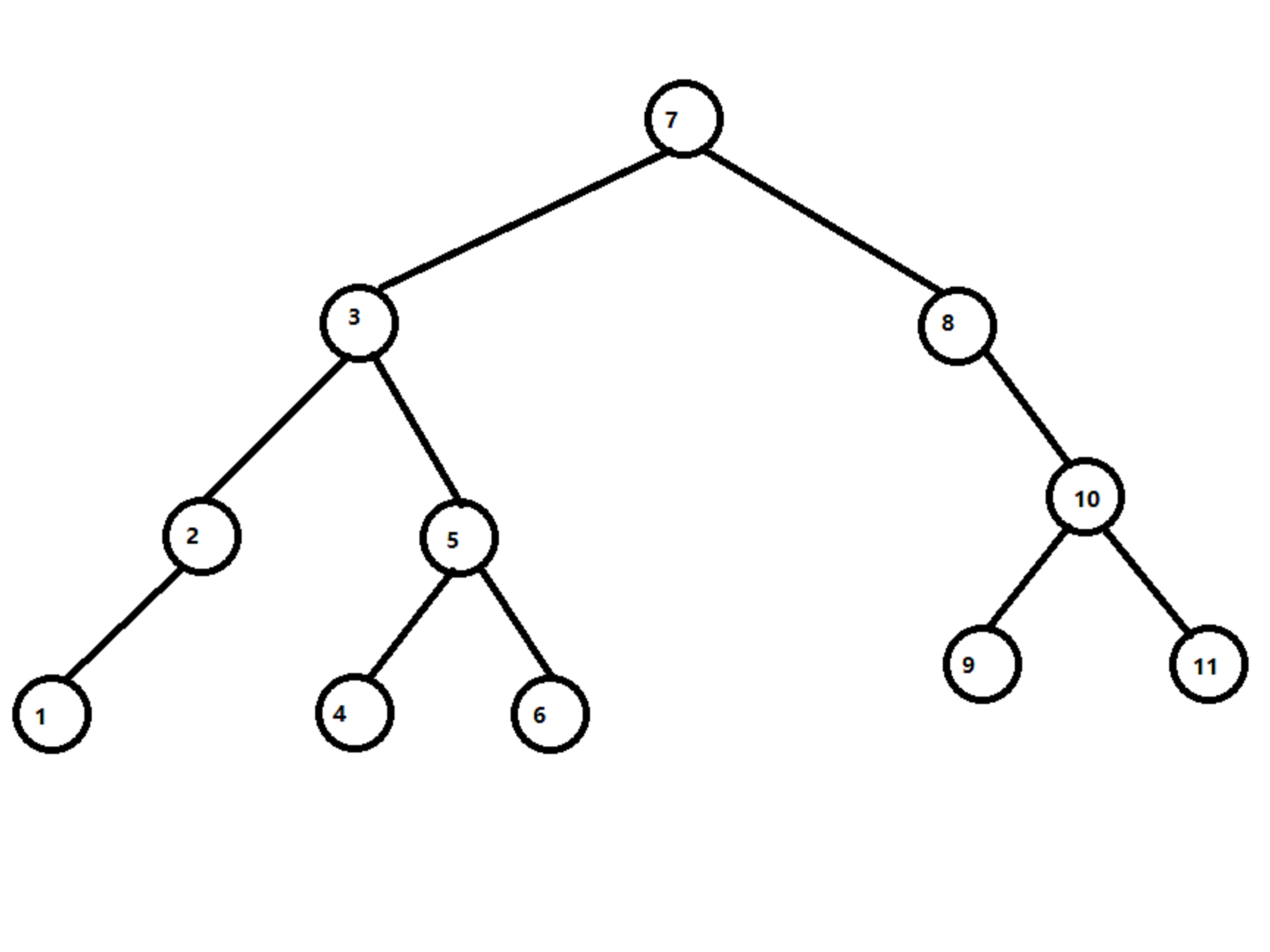 上图中序遍历即为1,2,3,4,5,6,7,8,9,10,11