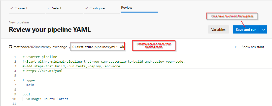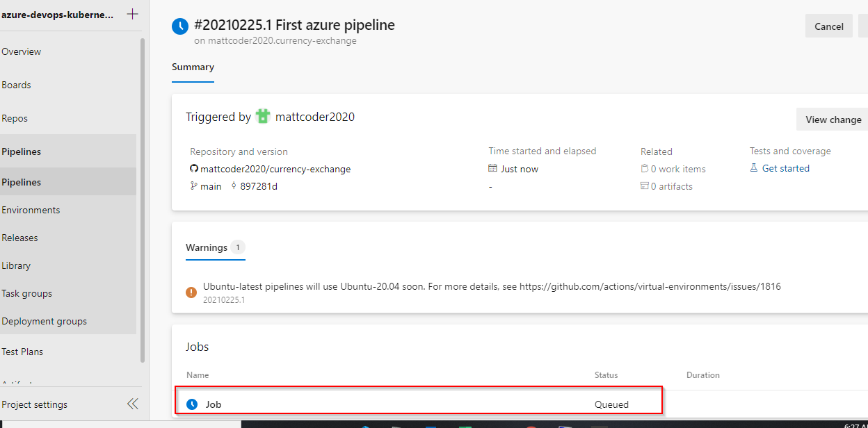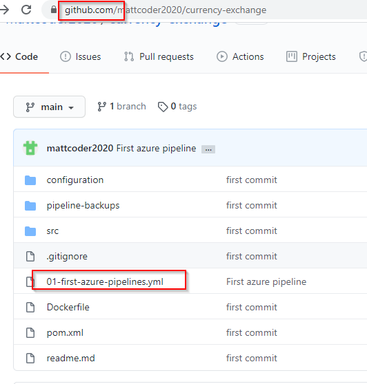 Your branch is up to date with 'origin/main'.Changes to be committed:(use "git reset HEAD <file>..." to unstage)modified:   01-first-azure-pipelines.ymlPS E:\misc\devops-master-class-master\projects\microservices\01-currency-exchange-microservice-basic> git commit -m "change pipeline"