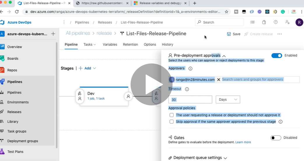Use Release to gate activitiy within one pipeline, adding approval cycle, and release trigger