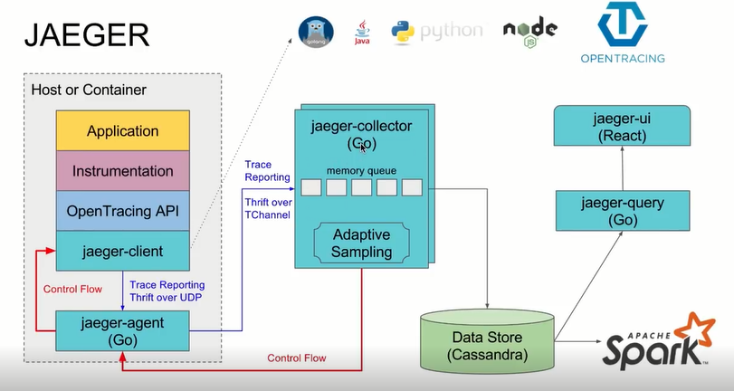 OpenTrace take a tracer instance (e.g. Jaeger) to post the metrics via UDP to the remote Jaeger instance for display