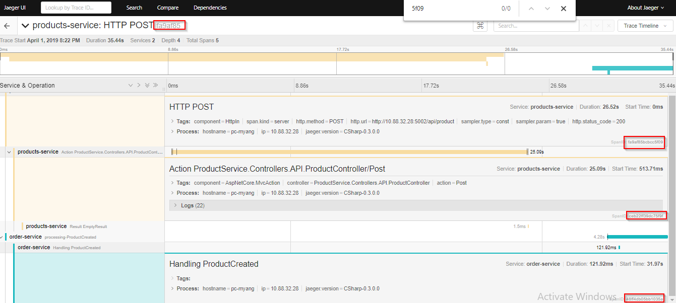 For Second Processor, Order Sevice will acquire the property via JaegerMiddleWare and resolve it to get the span id hierarchy then use it to trace whatever the operation under the same parent span id