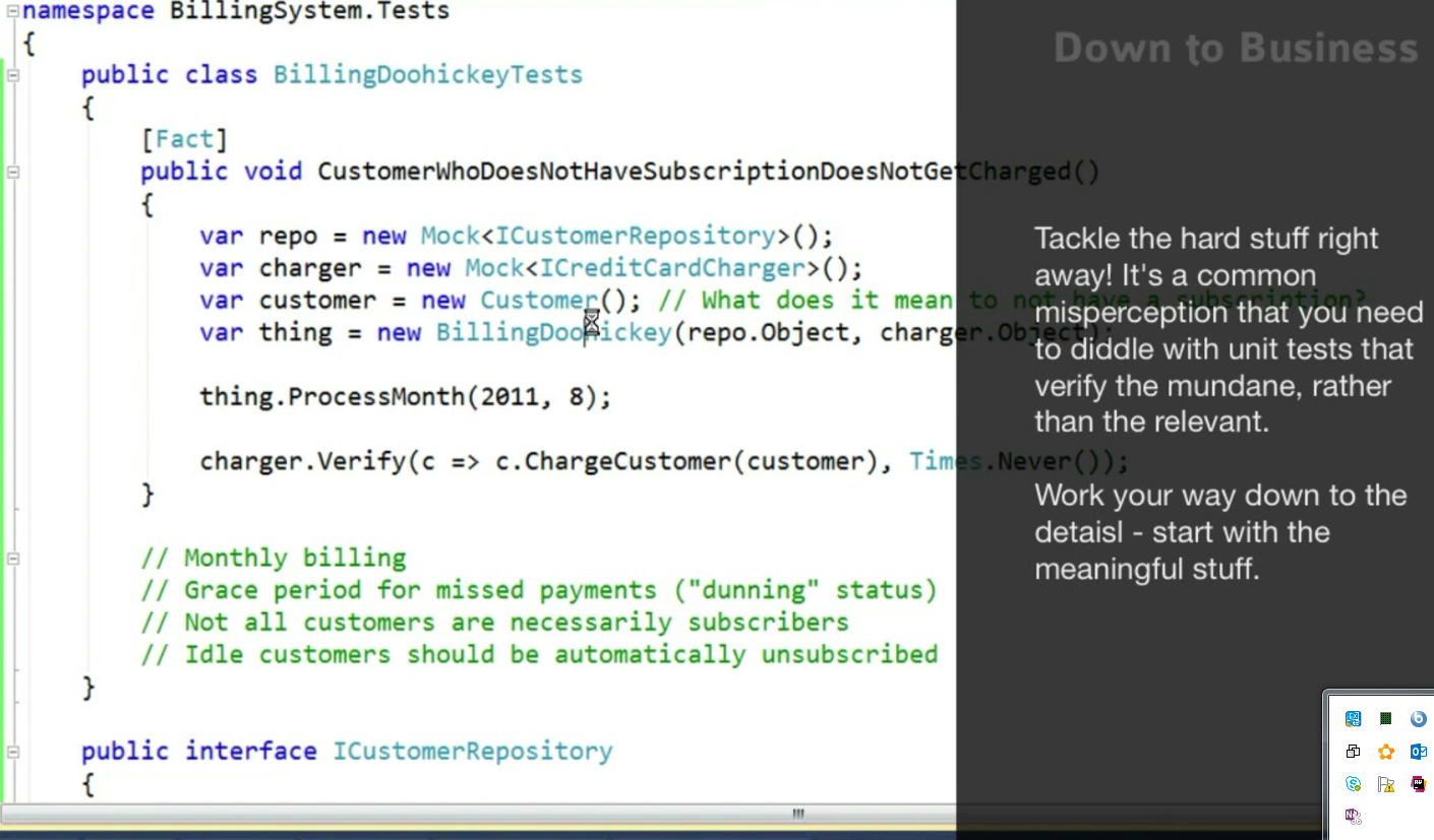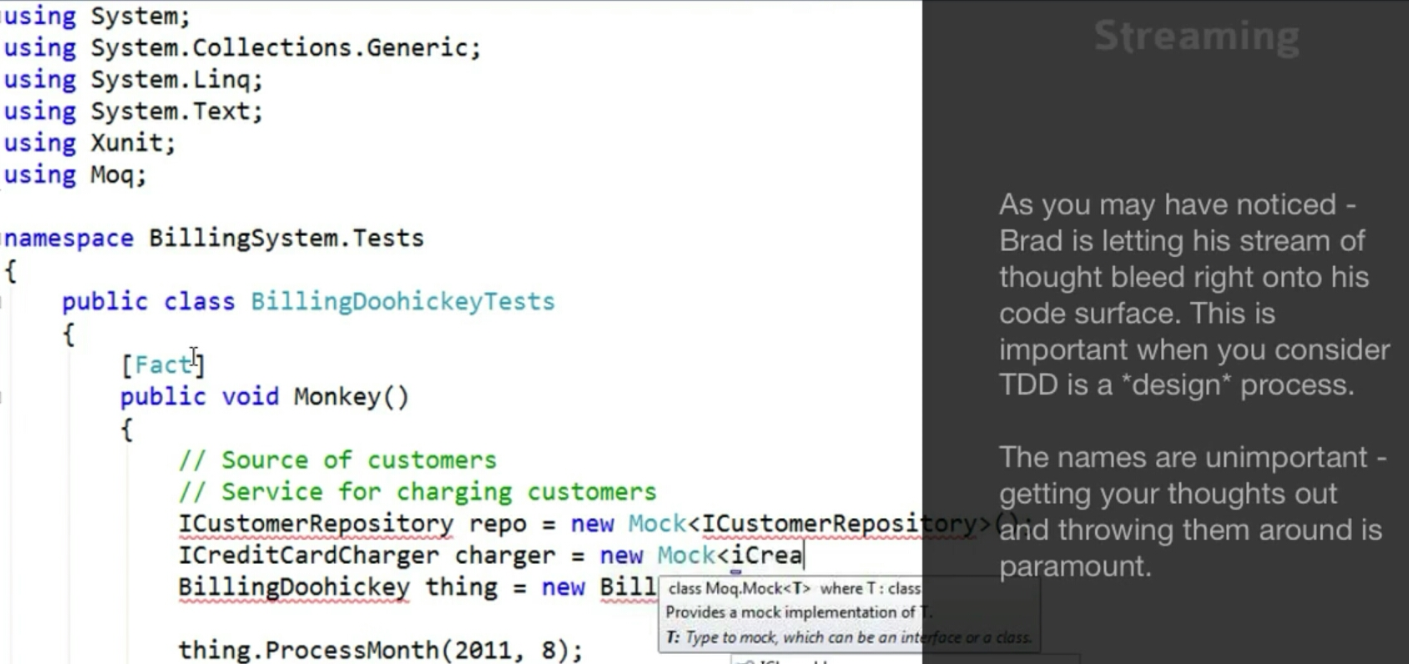 2. naming the functionakies/class is not  important, throw in ur biz domain class / interface under the test project and let your thoght stream runs.