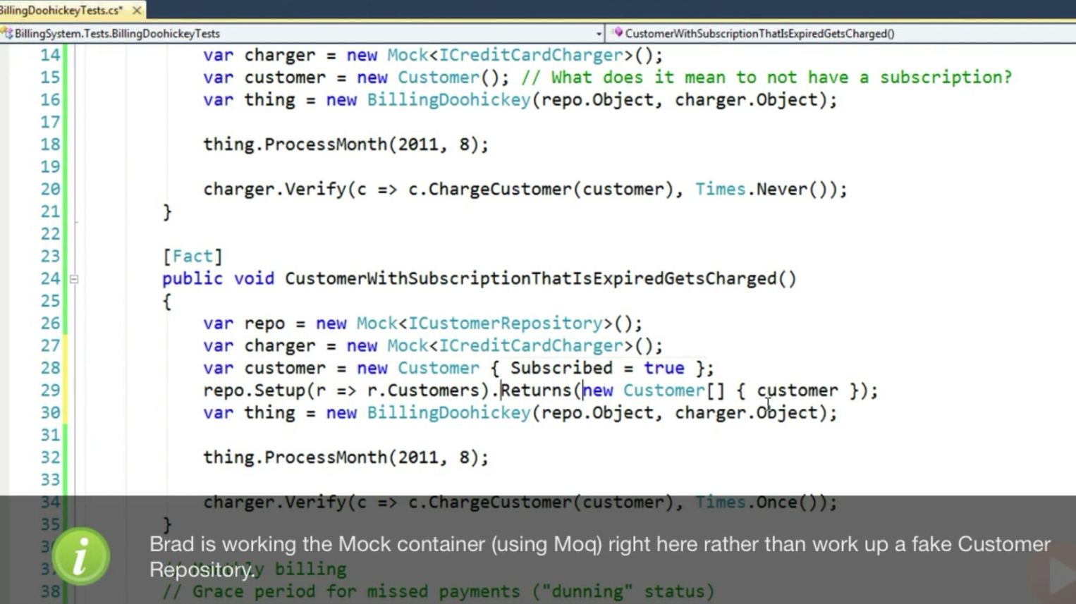 constantly changing the processor.processPayment method after feeding the charger mocker object and customer entity to processor.