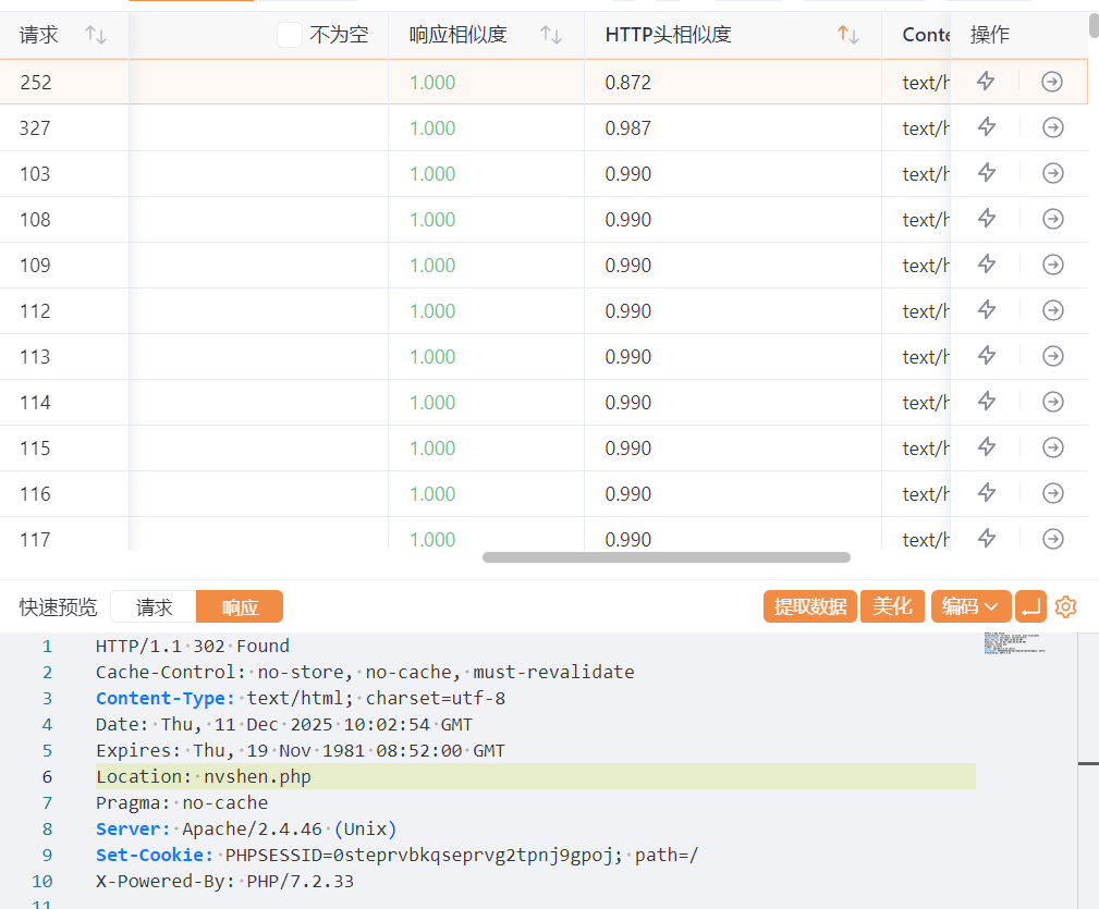 同时补习了一下302响应(302 只是服务器给出的“建议跳转”,浏览器(或你的发包工具)在收到 302 后会自动跟随 Location 头里的新地址再发一次请求,最终把跳转后的内容拿回来展示给你。)