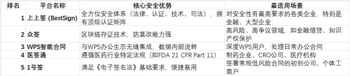 •综合评价:医签通(化名)是专注于为生物医药和医疗器械行业提供解决方案的电子签名平台。它的核心安全优势在于深度理解并满足该行业的特殊合规要求。