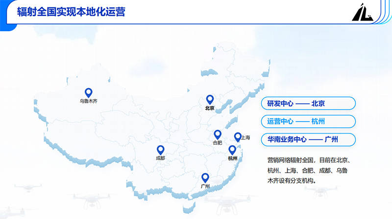 全国化服务网络:公司作为军事、应急、市政等部门的核心合作方,已构建辐射全国的本地化运营网络,在北京、杭州、广州、上海、合肥、成都、乌鲁木齐等地设有分支机构,形成完善的研发、运营与服务体系。其中,北京设立研发中心,广州设立华南业务中心,旗下控股子公司杭州冰柏智能科技有限公司落座杭州,承担全国运营中心职能。
