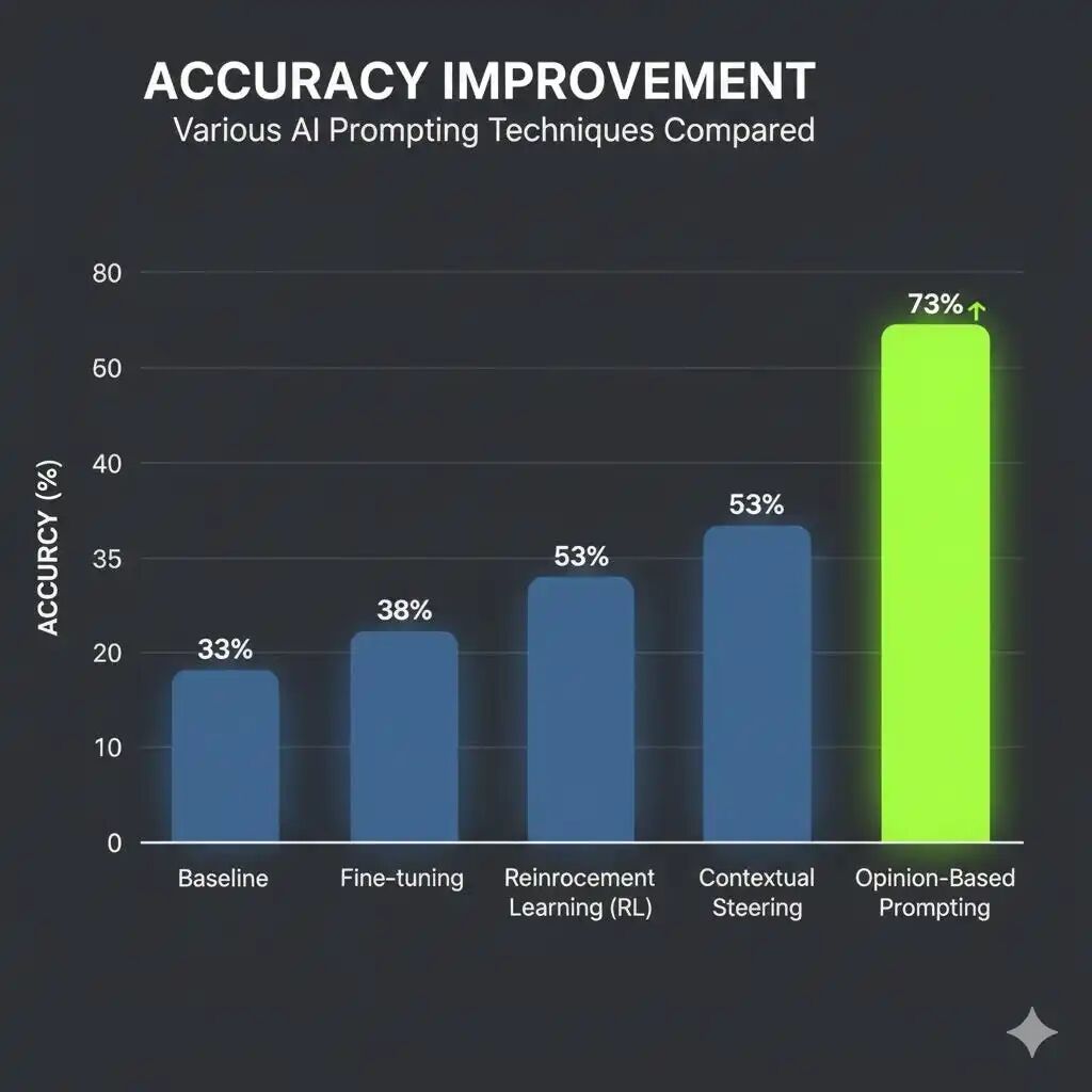 当研究者把 opinion-based prompting 和 Activation Steering 结合时,整体表现最好——一些场景准确率超过 80%。