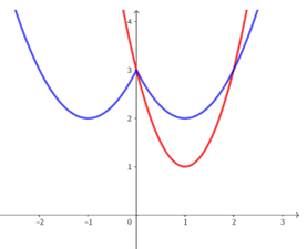 5.(4分) 若\(x\)为全体实数,则函数\(y=x^2-2|x|+3\)\(y=2x^2-4x+3\)的交点有____个.