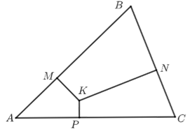 7.(4分)\(K\)\(△ABC\)内一点,过点\(K\)作三边的垂线\(KM\)\(KN\)\(KP\),若\(AM=3\)\(BM=5\)\(BN=4\)\(CN=2\),则\(AP^2=\)____.