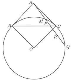 9.(4分) 已知正方形\(OBAC\),以\(OB\)为半径作圆,过\(A\)的直线交\(⊙O\)\(M\)\(Q\),交\(BC\)\(P\)\(R\)\(PQ\)中点,若\(AP=18\)\(PR=7\),则\(BC=\)____.