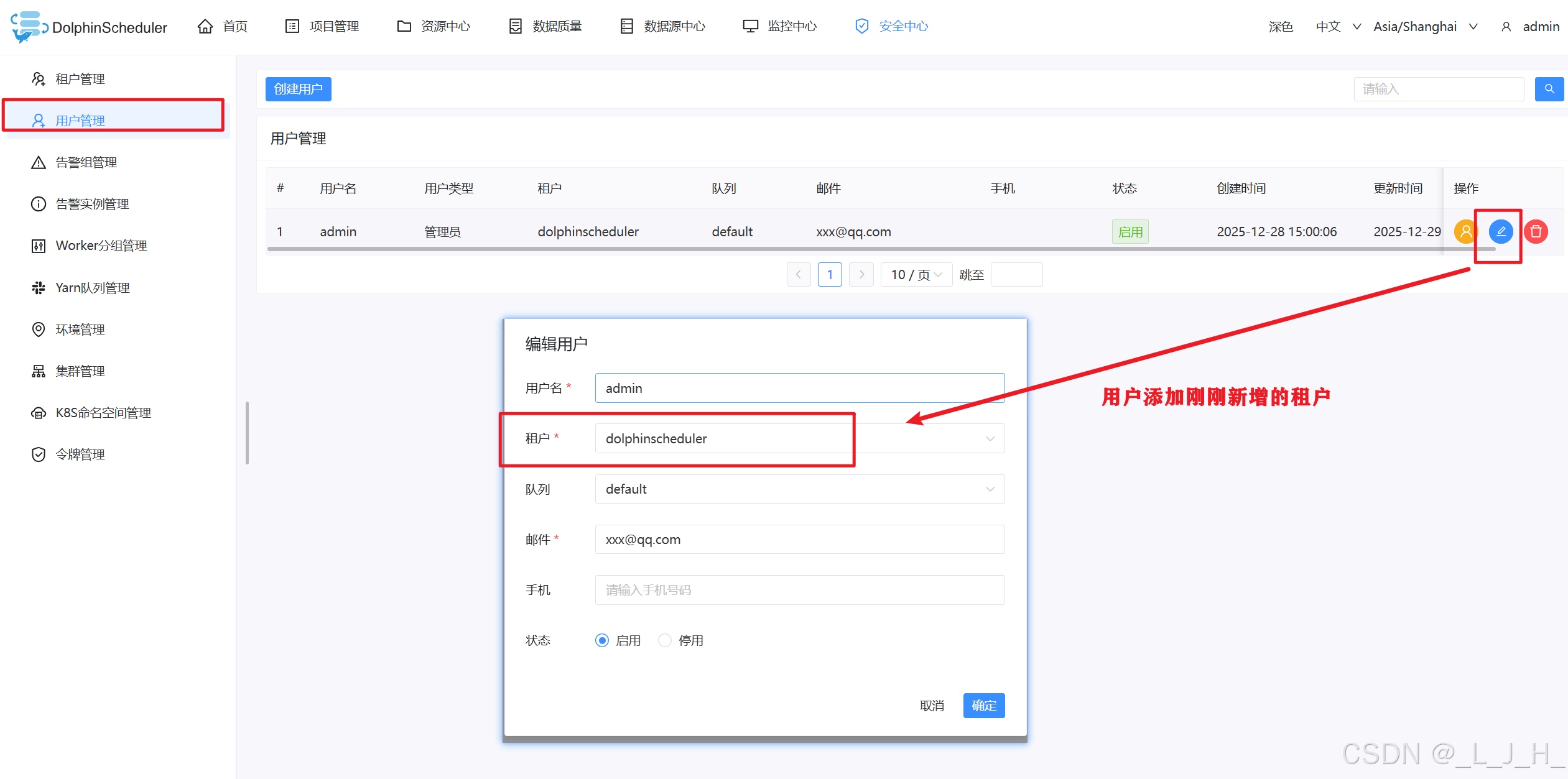 • 3、dolphinscheduler 可视化页面添加租户